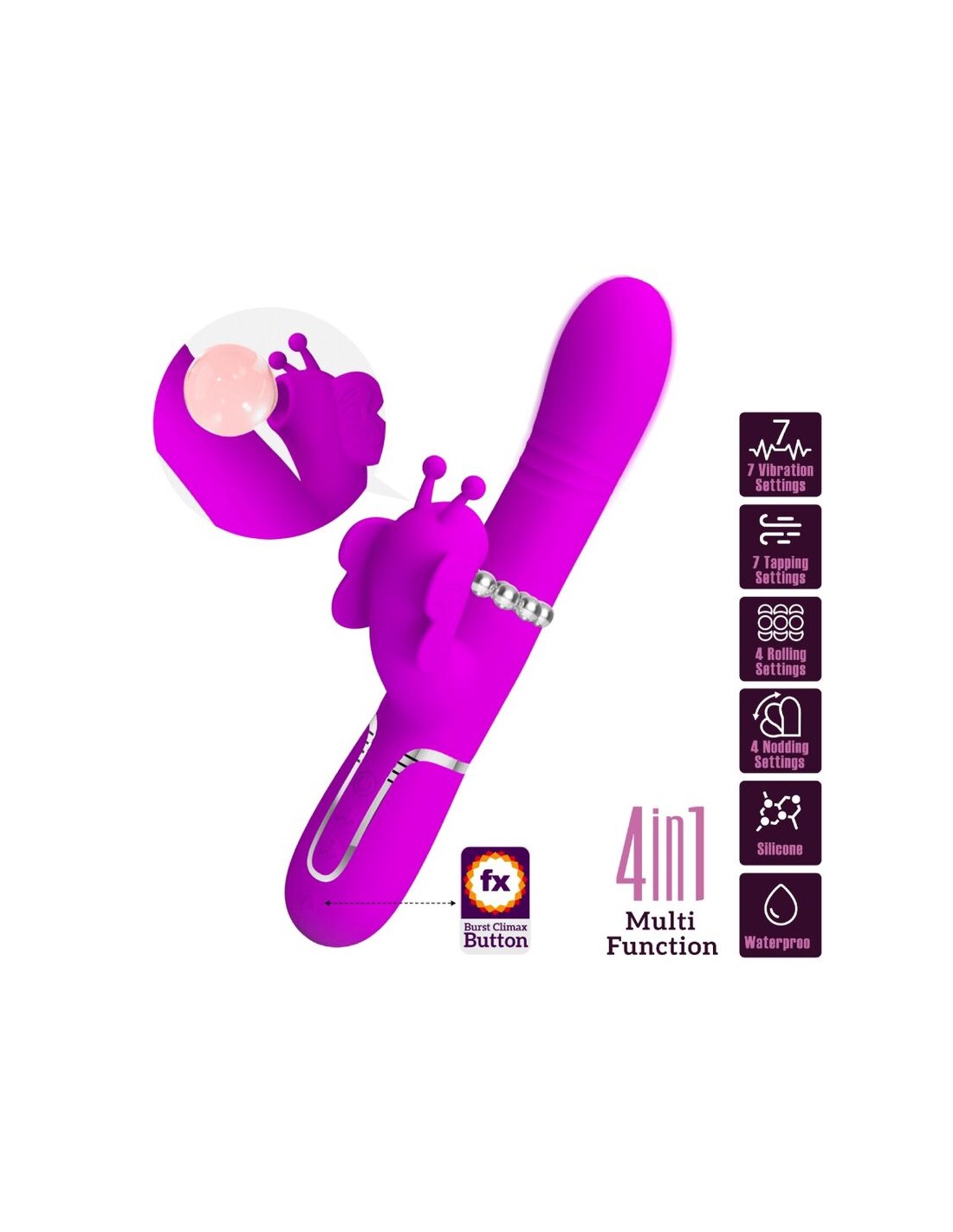 Vibrator ima 7 podešavanja vibracije, 7 podešavanja tapkanja i 4 podešavanja klimanja glavom!