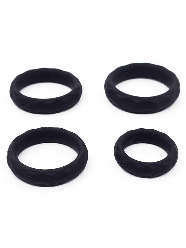 Set od četiri silikonska prstena koji imaju blagu teksturu koja ni malo ne smeta prilikom korišćenja ali ni ne skliznu sa korena baš lako.Od četiri različite dimenzije veoma lako će te naći baš onu koja vam odgovara.Prstenovi su od rastegljivog i mekanog materijala.Koriste se tako što se postave na koren penisa i sprečavaju nagli povrat krvi i tako da iniciraju i produžavaju erekciju. Sa jačom erekcijom, nego inače, sam muškarac će pucati od samopouzdanja.