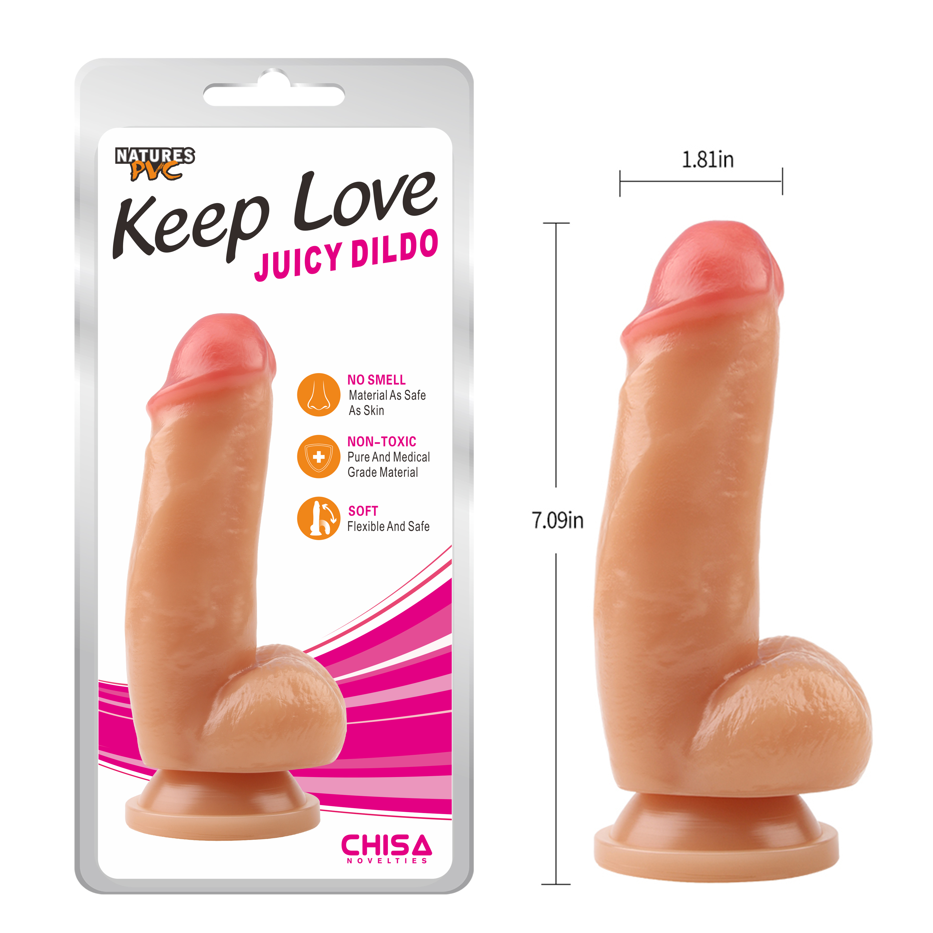 SIlikonski dildo sa testisima i vakum postoljem. Ovaj dildo je napravljen od prijatnog silikona u boji kože.Ukupne dužine oko 18cm i prečnika oko 4-4,5cm.Izuzetno trajan artikal koji se lako održava.